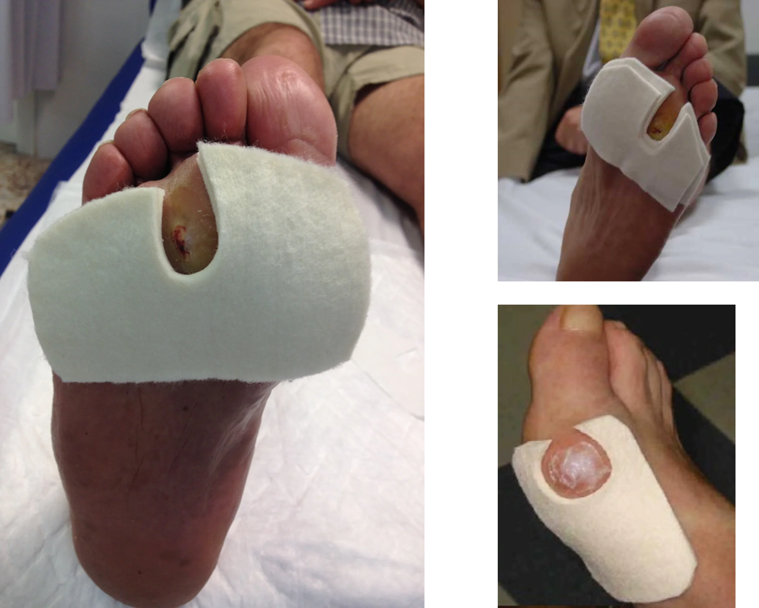 ¿Cómo se hacen? Elegiremos el grosor del fieltro a aplicar en función de la localización de la úlcera. En la zona plantar, solemos utilizar fieltros de entre 0,5 y 1,5 cm de grosor, mientras que en los dedos habitualmente usamos menor grosor. La elección siempre será en función de aquel grosor que neutralice o equilibre las fuerzas verticales.