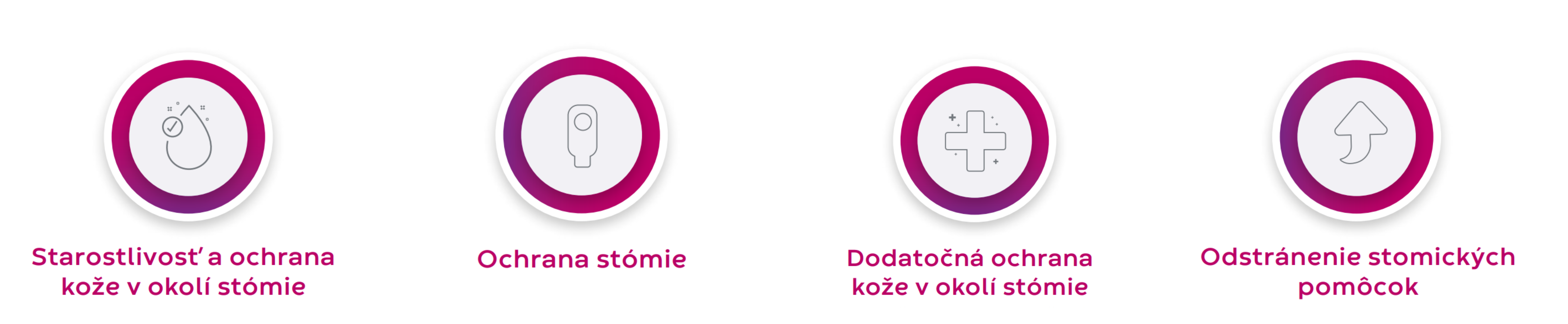 Produkty, ktoré vytvoria najlepšiu ochranu kože okolo stómie, zabránia podtekaniu a poskytnú výbornú priľnavosť na kožu, čím zabezpečia optimálnu účinnosť stomického systému.